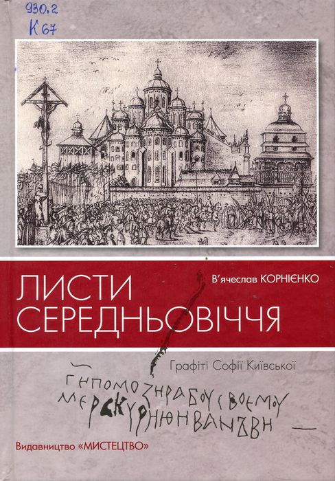 Б52619 930.2 К67 Корнієнко В. В. Листи Середньовіччя. Графіті Софії Київської / В. В. Корнієнко. – Київ : Мистецтво, 2025. – 144 с. : іл. кольор., фот. – (Державна програма – 2025). Книга у доступній науково-популярній формі розповідає про історію графіті Софійського собору. Виклад матеріалу побудований у вигляді путівника, яким можна буде здійснити як віртуальну, так і реальну мандрівку Софійським собором. Тож книга підходить як для читання вдома чи бібліотеці, так і для активного відпочинку й відвідання самої пам’ятки. Текст розбитий на вісімнадцять глав приблизно однакового розміру. Перші три є своєрідним вступом, в яких коротко подаються відомості історії Софійського собору, його мозаїк та фресок. Четвертий розділ розкриває перед читачем загальні аспекти вивчення графіті, для чого і як писали на стінах. Наступні чотирнадцять розділів у легкій доступній формі оповідають про історію деяких написів і малюнків, які розташовані на першому й другому поверхах собору. Маршрут побудований таким чином, аби читач, який буде прагнути самостійно відвідати Софійський собор, міг пройти означеним маршрутом і побачити ці (тай інші) графіті безпосередньо на стінах, тому видання містить і схему маршруту, фотографії самих написів. Видання розраховане на широке коло читачів, які прагнуть поглибити свої знання про історичне минуле нашої держави.