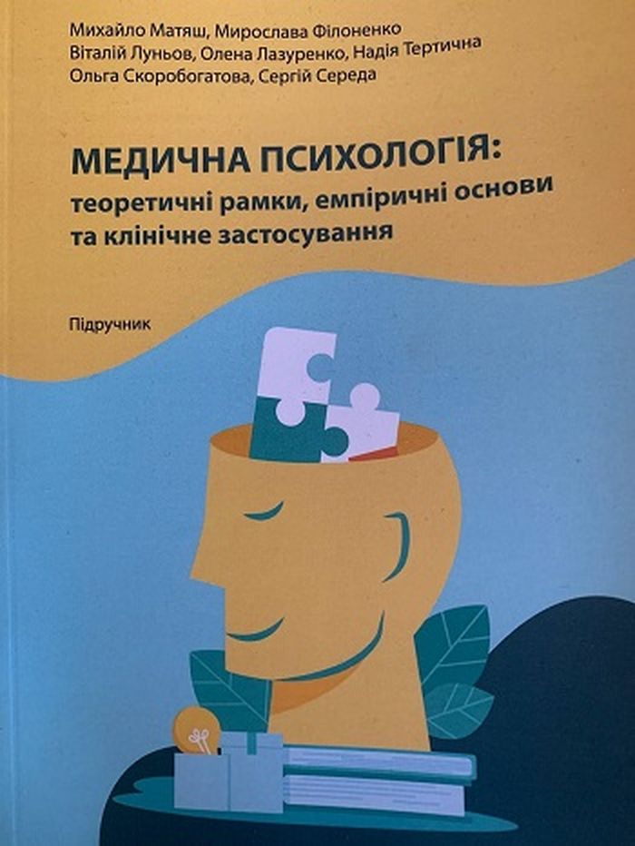 159.9 М 4242 Медична психологія : теоретичні рамки, емпіричні основи та клінічне застосування: підручник / М. Філоненко, В. Луньов ; ред. М. Матяш. – Київ : Людмила, 2024. – 170 с. – ISBN 978-617-7828-00-0. У навчальному виданні представлено системний огляд сучасних підходів до медичної психології як окремої галузі науки та клінічної практики. Підручник узагальнює передісторію становлення медичної психології, та її розвиток в Україні як саме лікарської спеціальності, а також сучасні аспекти професійної підготовки фахівців Підручник адресовано, передусім, здобувачам зі спеціальності 225-медична психологія, практикуючим лікарям-психологам, а також науковцям, які цікавляться сучасними підходами до медичної психології та її розвитком в Україні як лікарської спеціальності