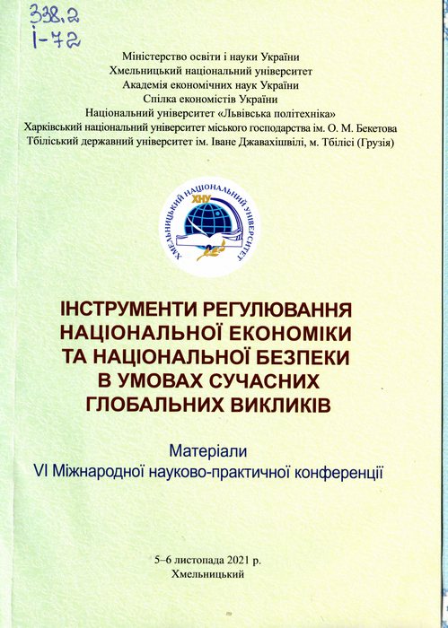 Б47858-2021 338.2 І-72 Інструменти регулювання національної економіки та національної безпеки в умовах сучасних глобальних викликів : матеріали VI Міжнар. наук.-практ. конф. 5-6 листоп. 2021 р., Хмельницький / М-во освіти і науки України, Хмельниц. нац. ун-т, Тбіліс. держ. ун-т; ред. М. І. Бондаренко, Л. С. Любохинець, Л. Б. Бушовська. – Хмельницький: ХНУ, 2021. – 126 с. : табл. Розглянуті аспекти розвитку національної економіки та засади забезпечення національної безпеки; особливості фінансових механізмів в економіці країни; сучасні виклики і загрози національній безпеці; особливості цифрової економіки. Для керівників підприємств, фахівців, викладачів і студентів економічних ЗВО.