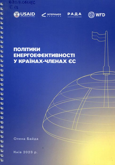 В6694 620.9 Б18 Байда, Олена. Політики енергоефективності у країнах-членах ЄС : / О. Байда ; USAID, Інтерньюз Україна. - Київ : [б. в. ], 2023. - 52 с. : граф., табл. Цей звіт включає огляд ефективних стратегій політики енергоефективності, які застосовуються в країнах-членах ЄС, зокрема в Польщі, Литві та Данії. Також аналізуються складнощі, що виникають під час впровадження цих політик, і встановлюється їхнє значення для України, враховуючи її специфічний контекст. І можуть послужити важливим прикладом покращення енергоефективності та зменшення викидів парникових газів. Розглянуті аспекти мають важливе значення для розвитку стійкого енергетичного майбутнього України.