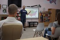 На черговому засіданні розмовного клубу з волонтером Корпусу Миру в Україні учасники зустрічі продовжили мандрувати трьома наступними штатами із серії American Road Trip. Як завжди члени клубу об’єднались у три групи, шукали інформацію про свій штат і презентували її іншим. Цього разу розглянули Колорадо, Нью-Мехіко та Юту.