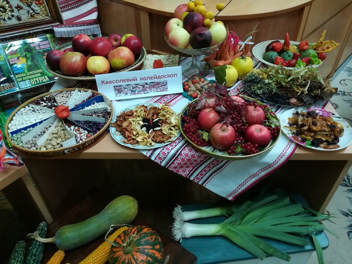 На виставці-інсталяції «В працьовитих руках – щедрий врожай», учасники клубу представили цікаві композиції з овочів, фруктів, квітів, екзотичних рослин та поділилися власним досвідом їх вирощування. Присутні мали змогу дізнатися рецепти оригінальних домашніх заготівель: каперсів з бутонів настурції, варення з фізалісу, горіхів, соснових шишок, маринованих та сушених фруктів тощо.
