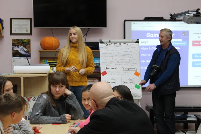 Вчора, 22 листопада у центрі «Вікно в Америку» відбулось святкування Дня Подяки (Thanksgiving Day). Це свято вважається одним із найважливіших у США, коли американці дякують Богові і одне одному за все те хороше, що сталося, готують індичку і дивляться по телевізору щорічний парад гігантських повітряних куль між хмарочосами Нью-Йорка. Про особливості святкування на своїй батьківщині розповів волонтер Корпусу Миру США в Україні Алан Янг. Протягом зустрічі ділились на команди, брали участь у конкурсах та спілкувалися англійською мовою у невимушеній та теплій атмосфері.