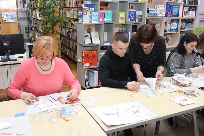 «Виготовлення вітальної валентинки в техніці декупаж» - такий майстер-клас відбувся в інформаційно-ресурсному центрі «Вікно в Америку». Всім відомо, що найдорожчі подарунки – виготовлені своїми руками, в які вкладено любов, тепло і найкращі побажання. Як створити валентинку з простих і доступних матеріалів навчила викладач мистецтва гімназії №2 Гуменюк Наталія Вікторівна. Організувала подію для учнівської молоді офіційний представник FLEX (програми обміну майбутніх лідерів Бюро у справах освіти і культури Державного департаменту США) в м. Хмельницькому Олександра Алдобаєва.