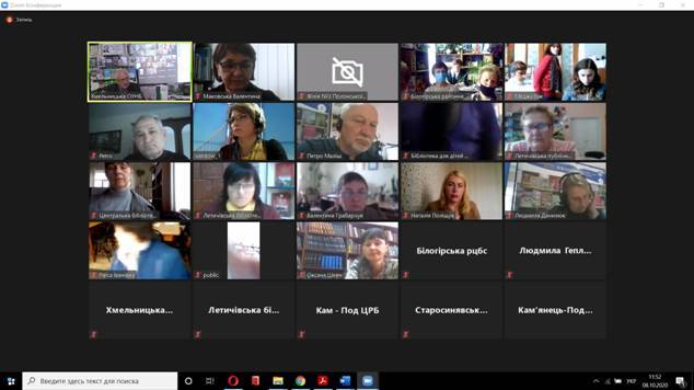 Захід проходив на хмарній платформі ZOOM для читачів публічних бібліотек області. Хмельницька обласна універсальна наукова бібліотека отримала у подарунок перші примірники книги-спогадів «Древо триєдине». Приємно те, що книга надійде майже у кожну публічну бібліотеку області.