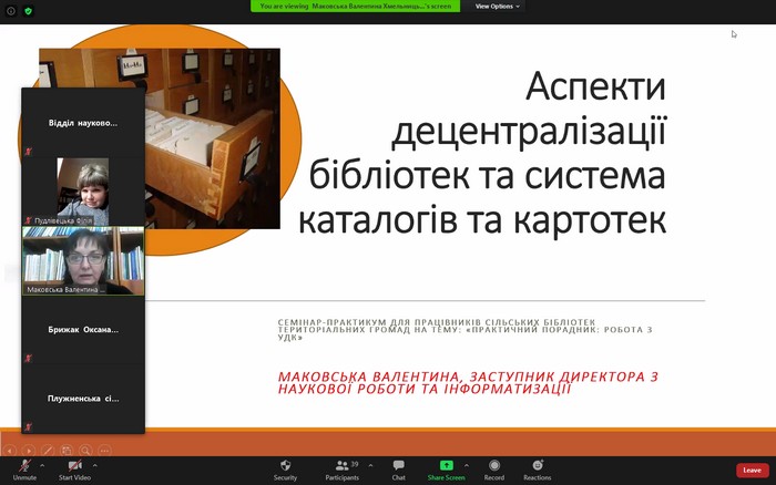Відбувся семінар – практикум для працівників сільських бібліотек територіальних громад на тему: «Практичний порадник: робота з УДК». До семінару на платформі Zoom долучилися 45 фахівців із 22 територіальних громад.