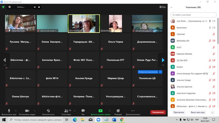 Також Н. Ломако відповіла на усі запитання учасників заходу. У онлайн-заході взяли участь понад 60 учасників із 28-ми територіальних громад області. Серед них: керівники закладів та працівники сфери «Культура», фахівці кадрових служб громад, користувачі публічних бібліотек.