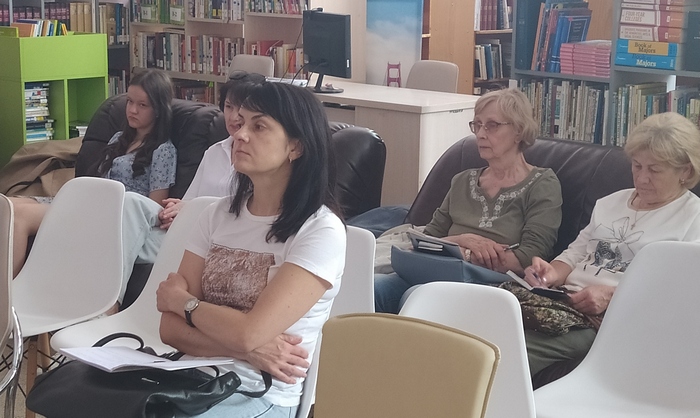 На завершення керівниця кіноклубу Docudays UA «Право в об’єктиві» Зоя Філіпенко розповіла присутнім про кіноклуб, який діє на базі бібліотеки. Учасники переглянули документальний фільм «Мова», у якому йдеться про створення і діяльність Безкоштовних курсів української мови – громадської ініціативи, яка діє у кількох десятках міст. Обговорили питання мовної політики у країні, висловили власні думки про те, що мотивує їх вивчати українську мову.