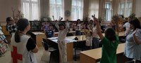 Чеглакова Анастасія – волонтерка психосоціальної підтримки Товариства Червоного Хреста України в Хмельницькій області провела вправу на саморегуляцію організму «Дерево на вітрі». Учасникам було запропоновано спосіб розслабитися, відчути себе захищеними, використати свою уяву і заодно відкрити незвідані можливості свого організму.