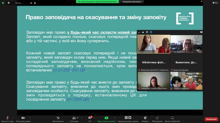 «Як скасувати заповіт» – тема правової години для мешканців територіальних громад та користувачів публічних бібліотек на платформі ZOOM.