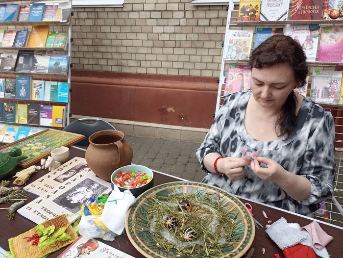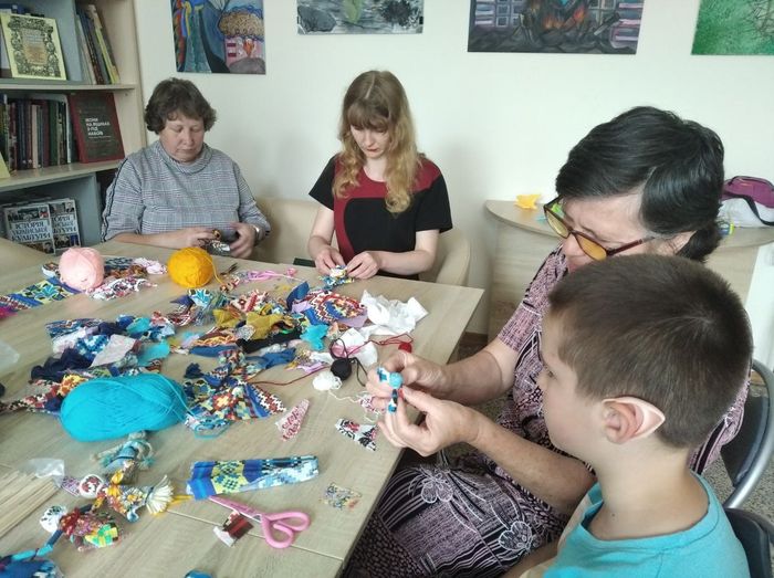 - спільно з відвідувачами створено ляльку-мотанку з відрізків тканини, ниток, стрічок та птаха з сіна в техніці сіноваляння/сіноплетіння;