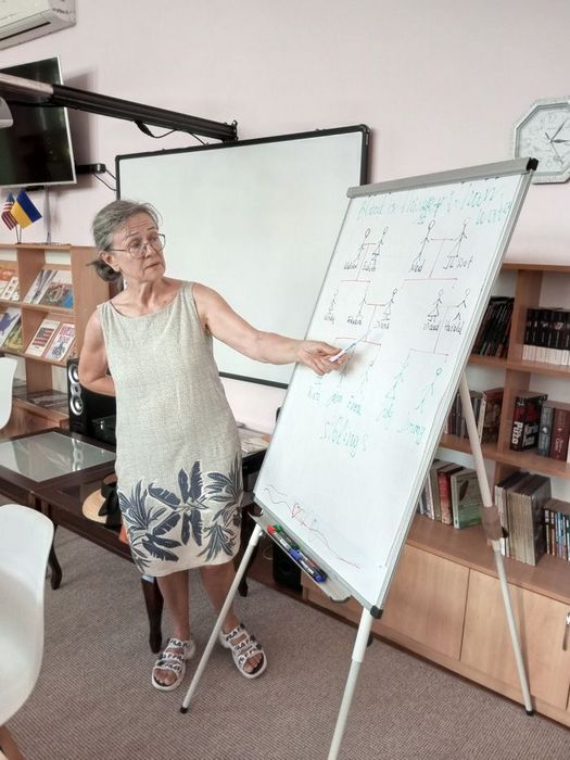 English Speaking Club (англомовний розмовний клуб) з волонтеркою Наталією Давидко в центрі «Вікно в Америку»: продовжили вивчати назви статусів в родинних стосунках, використовували вивчену лексику в різних мовних ситуаціях, говорили та переглядали відео про штат Айова, його особливості, визначні місця, такі як музеї, бібліотеки та локації для сімейного відпочинку.