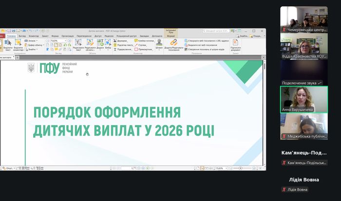 «Соціальні виплати сім’ям з дітьми: що маємо знати» – тема інформаційної години, яка відбулася для мешканців територіальних громад області на платформі ZOOM. Спікерка зустрічі – Анна Варушичева, заступник начальника відділу розгляду звернень Головного управління Пенсійного фонду України в Хмельницькій області.