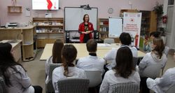 Про донорство крові, потреби компонентів крові під час воєнних дій розповіла представник Хмельницької обласної організації Товариства Червоного Хреста України Анастасія Чеглакова та закликала долучатись до цієї благородної місії і таким чином допомагати нашій армії. Вона поінформувала про те, хто може здавати кров, а кому категорично заборонено, з якого віку можна стати донором, а також міфи, які існують про донорство крові.