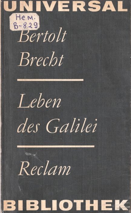 Brecht, Bertolt. Leben des Galilei : mit Anmerkungen Brechts / B. Brecht. - 17. Aufl. - Leipzig : Verlag Philipp Reclam jun., 1978. - 141 S. - (Reclams Universal-Bibliothek).