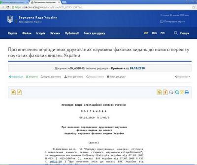 8 вересня 1999 р. журнал внесений Вищою Атестаційною Комісією (ВАК) України до Переліку наукових фахових видань, в яких можуть публікуватися основні результати дисертаційних робіт.