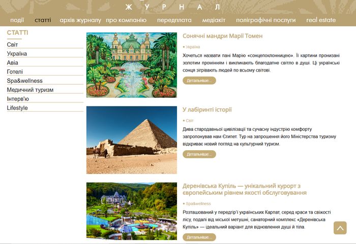 Читайте про дива стародавньої цивілізації та сучасну індустрію комфорту, унікальний курорт з європейським рівнем якості обслуговування у Карпатах, найперший європейський союз, що увійшов в історію як Ганза, сади Куби та секрети від тренера та фахівця зі здорового способу життя тощо: https://intour.com.ua/podii