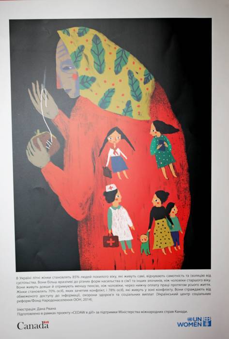 В рамках проекту ООН Жінки, що називається "CEDAW в дії!" та за підтримки Міністерства міжнародних справ Канади, в бібліотеці з 15 червня до 1 липня експонуватиметься виставка київської художниці Дани Рваної, присвячена дискримінованим жінкам в Україні. Художниця написала цілий цикл робіт, що висвітлюють утиски прав вразливих груп жінок в Україні. Особливо це стосується жінок і дівчат з ВІЛ та інвалідністю, внутрішніх переселенців та сільських жінок, представниць деяких етнічних меншин, таких як роми, та ЛГБТ-спільноти. Ці групи зіштовхуються з порушеннями прав людини, нетолерантністю та особливо високим рівнем дискримінації в доступі до ухвалення рішень, зайнятості, охорони здоров'я, освіти та інших базових послуг.